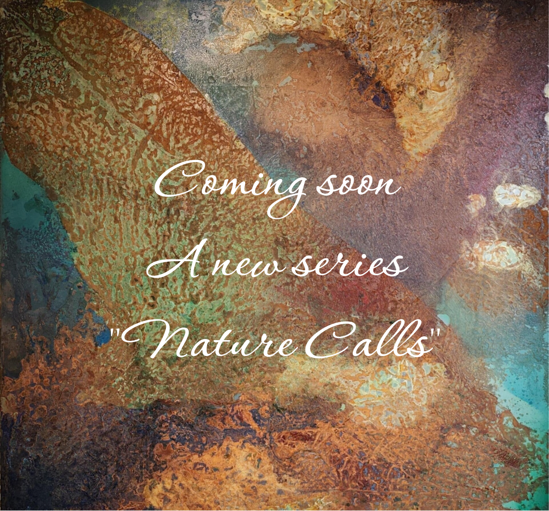 Mijn nieuwe reeks "Nature Calls" is een uitnodiging om terug te keren naar de oorsprong. In lagen van metaal en oxiderende kleuren laat de natuur haar stem horen – rauw, krachtig en helend. Geïnspireerd door mineralen, stenen en de adem van de aarde, nodigen deze werken je uit om te vertragen, te herbronnen en je ziel opnieuw te laten ontwaken.
